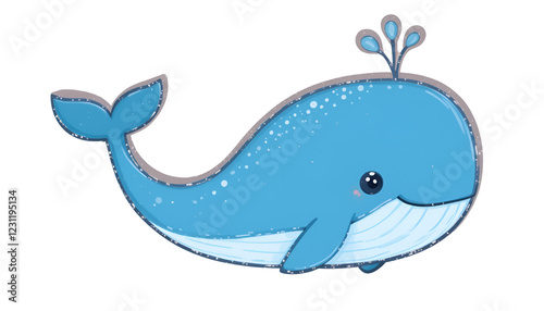 "Playful Whale: Minimalist Cartoon Illustration of a Blue Whale"