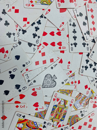 Playing cards spread out on a table