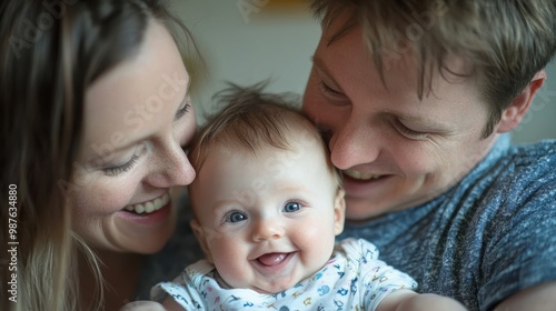 Playing with their baby, a young family shows genuine affection and fun interactions.