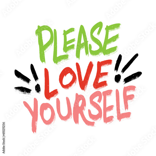 please love yourself quote creative hand drawn digital art work isolated on transparent background