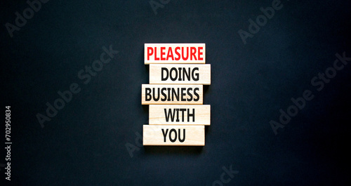 Pleasure doing business with you symbol. Concept words Pleasure doing business with you on wooden blocks. Beautiful black table black background. Pleasure doing business with you concept. Copy space.
