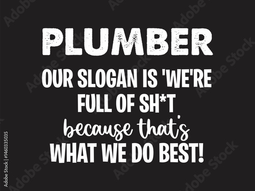 Plumber Our slogan is we're full of sh*t because that's what we do best Humorous plumbing-themed T-shirt design featuring a witty quote, perfect for professional plumbers and DIY enthusiasts.