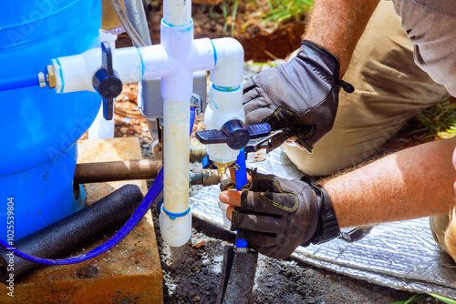 Plumber service assembles connection between water well house water system