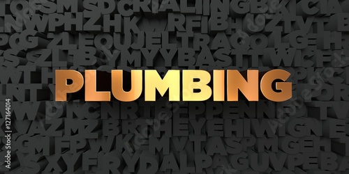 Plumbing - Gold text on black background - 3D rendered royalty free stock picture. This image can be used for an online website banner ad or a print postcard.