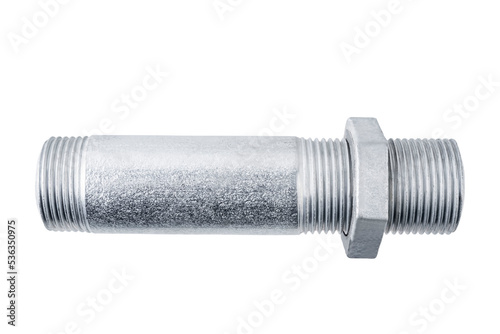 Plumbing Accessories, Extension Nipple, brass and stainless steel on a white isolated background