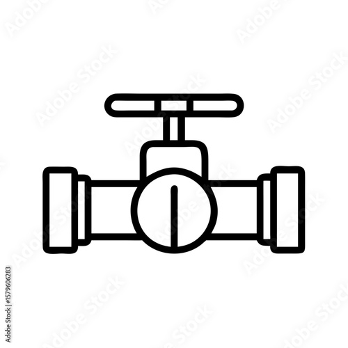 Plumbing valve depicted as clean line art. Plumbing valve shown with a turn handle and pipe fittings. Plumbing valve outline suits simple plumbing or heating diagrams for a clean, warm presentation.