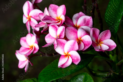 Plumeria flowers are blooming beautifully in the garden,select focus.