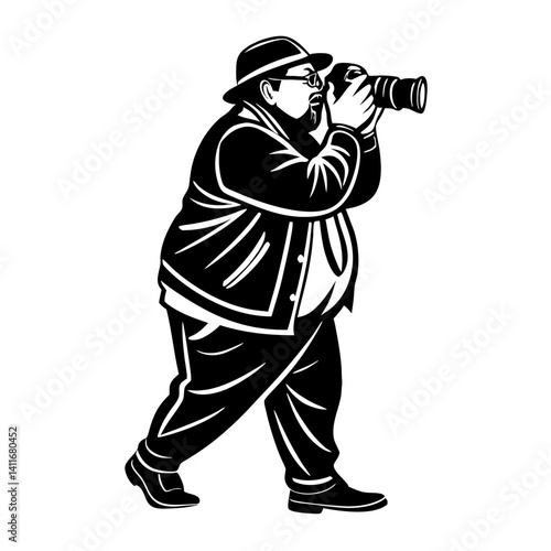 Plump grapher Capturing Moments with Camera Stylish Attire and Focused Expression