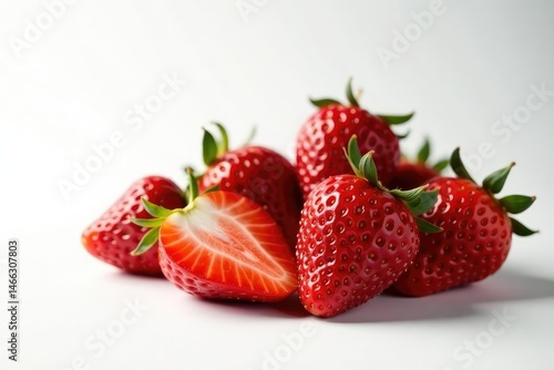 Plump ripe strawberries, pristine white backdrop , produce, white background