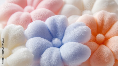 Plush Rhododendron flowers in pastel colors, cute floral wallpaper, cotton fabric texture, delicate aesthetic effect