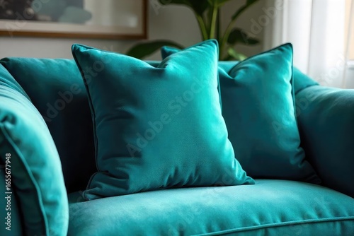 Plush velvet home cushion in rich teal, adding a touch of luxury and comfort to any living space Perfect for sofas, armchairs, or beds Ideal for adding texture and color , cozy, contemporary, home