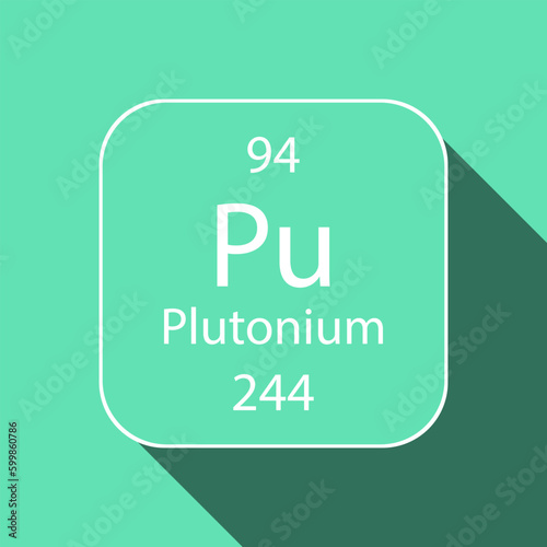 Plutonium symbol with long shadow design. Chemical element of the periodic table. Vector illustration.