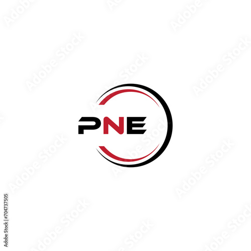 PNE logo. P N E design. White PNE letter. PNE, P N E letter logo design. Initial letter PNE letter logo set, linked circle uppercase monogram logo. P N E letter logo vector design.