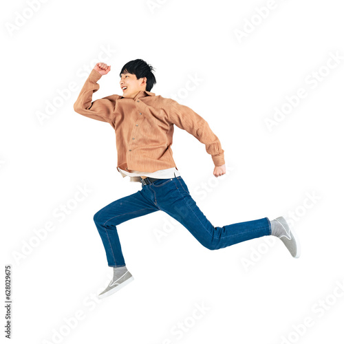 ジャンプするカジュアルな若い男性 背景透過切り抜きPNG