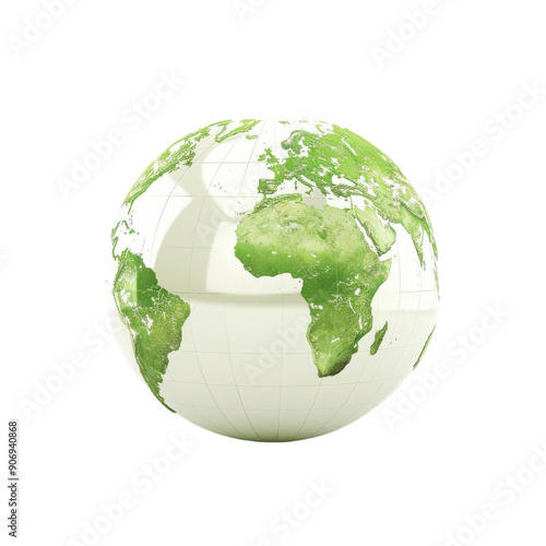 PNG A detailed green globe showcasing continents with a modern and clean design, perfect for environmental themes and global concepts.