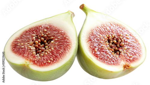 PNG A fresh, halved fig showcasing its unique pinkish flesh and tiny seeds.