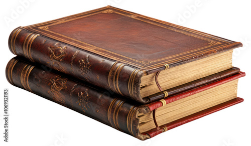 PNG Antique leather bound book publication wood white background.