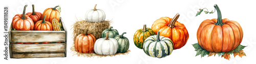 PNG Autumn harvest pumpkins illustration, element set on transparent background