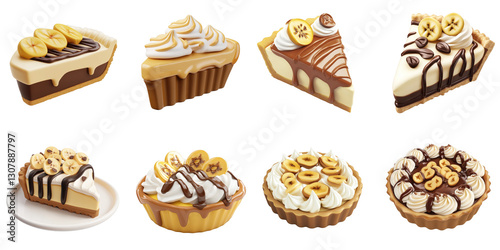 PNG banoffee no bg sample mockup set dessert plasticine concept using for decoration.