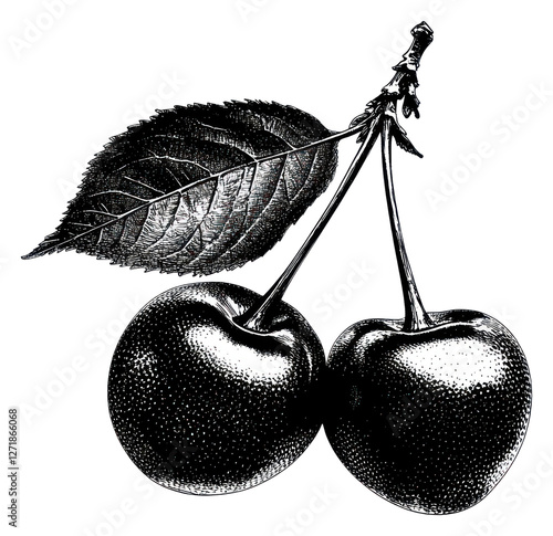 PNG Cherry retro photocopy stipple effect cherries fruit black.