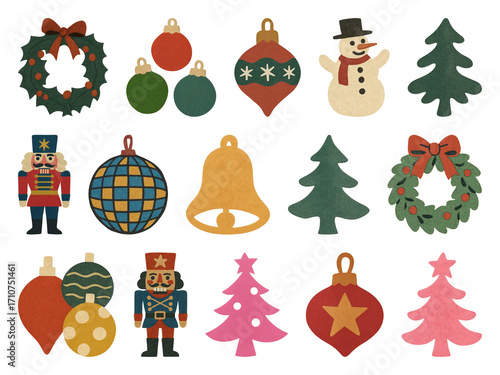 PNG Colorful festive Christmas decorations collection, element set on transparent background