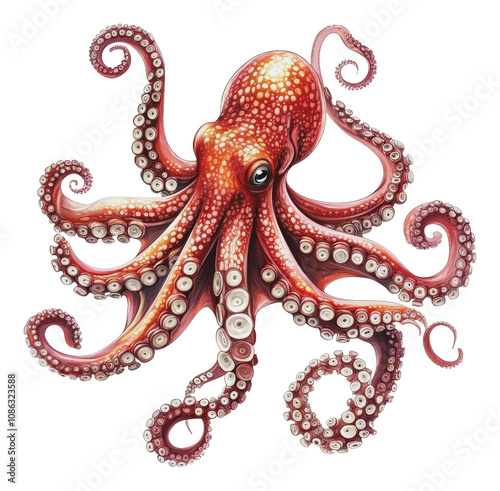 PNG Colorful red octopus swimming in the ocean waters