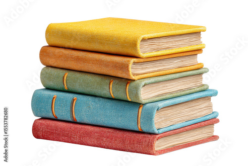 PNG Colorful stack of textured hardcover books on black background
