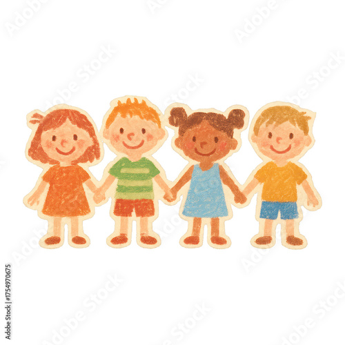 PNG Diverse children holding hands illustration.