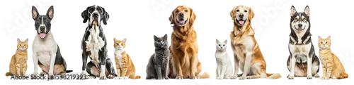 PNG Diverse pets sitting together happily, element set on transparent background