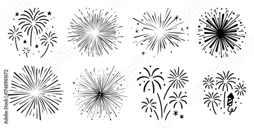 PNG Elegant black fireworks illustrations, element set on transparent background