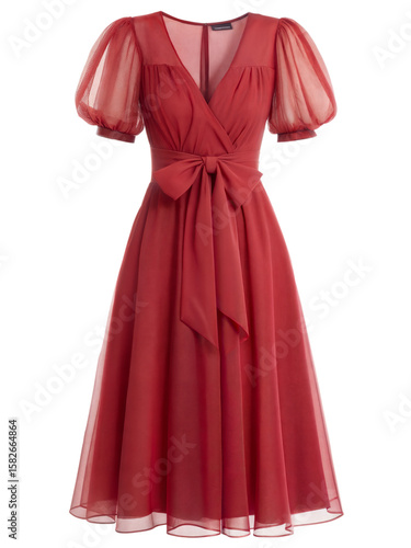 PNG Elegant Crimson Gown: A stunning, meticulously crafted gown in a rich crimson hue isolated on a transparent background.