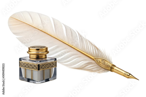 PNG Elegant feather quill and inkwell set with gold detailing