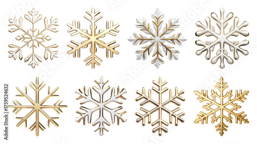 PNG Elegant golden and silver snowflakes, element set on transparent background