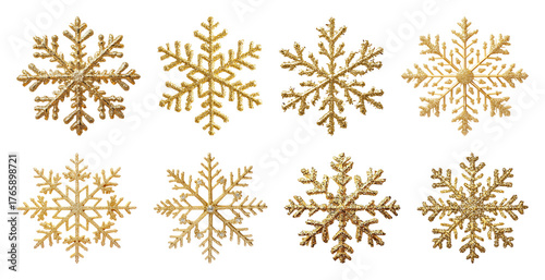 PNG Elegant golden snowflake designs, element set on transparent background