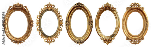 PNG Elegant vintage oval gold frames, element set on transparent background