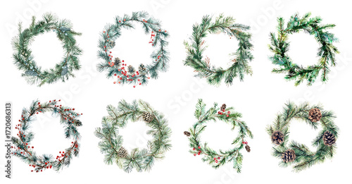 PNG Festive evergreen wreaths collection, element set on transparent background