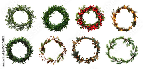 PNG Festive wreaths for holiday decor, element set on transparent background
