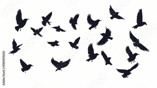 Png flock of birds silhouette isolated on clear background. Silhouette. Illustration