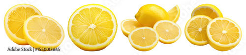 PNG Fresh vibrant lemon slices arrangement, element set on transparent background