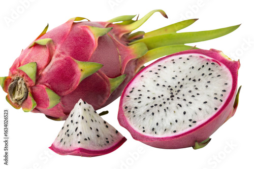 PNG image of Fresh Ripe Dragon Fruit, Whole and Sliced
