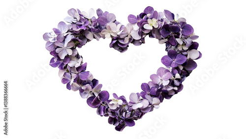 Png of A heart-shaped floral arrangement made of beautiful purple and white flowers, perfect for celebrating love and affection on transparent background.