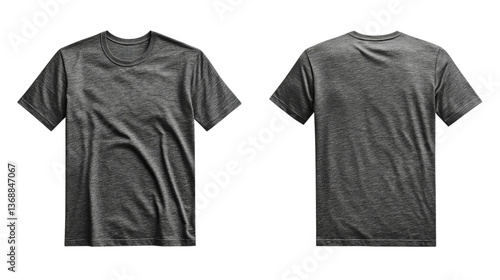 Png of A sleek, classic gray t-shirt displayed from the front and back, highlighting its simple yet stylish design on transparent background.