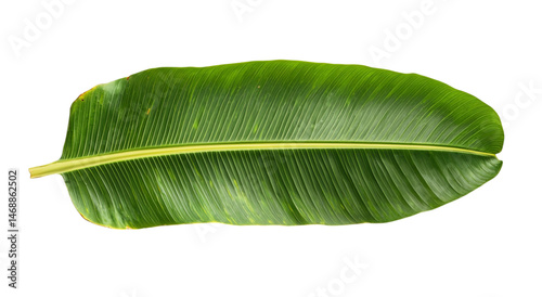 Png of A vibrant green banana leaf, showcasing its natural texture and intricate vein patterns, perfect for tropical decor.
