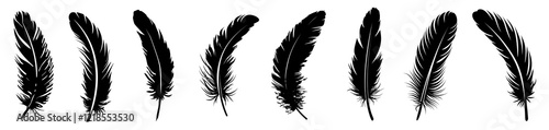 PNG Silhouette feathers elegant natural pattern, isolated element set, transparent background