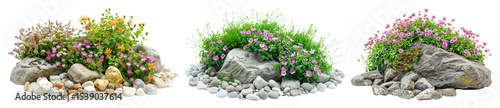 PNG Vibrant floral rock garden display, element set on transparent background