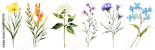 PNG Vintage botanical flower illustrations, element set on transparent background