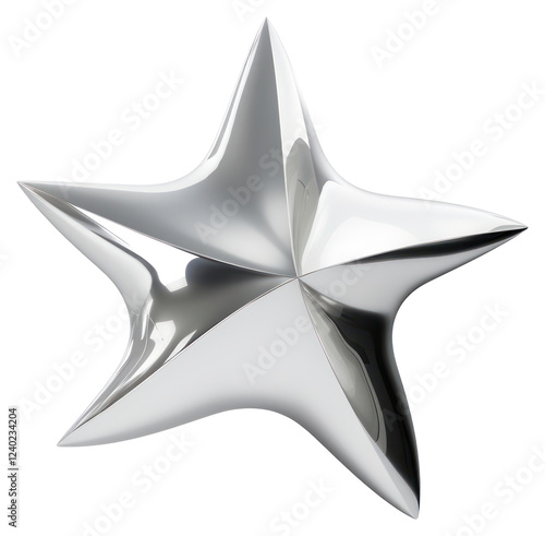 PNG Y2k chrome star metallic abstract art.