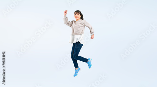 ジャンプする女の子の全身写真(切り抜き背景透過PNGも販売しております。作成者リンクから「PNG」で検索してください)