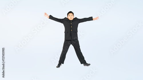 ジャンプする学ランを着た男子学生(切り抜き背景透過PNGも販売しております。作成者リンクから「PNG」で検索してください)