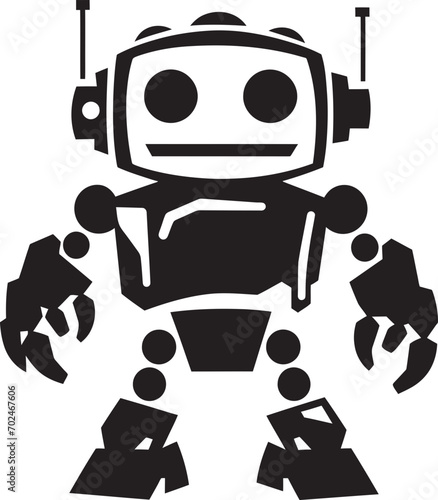 Pocket Protector Black Vector Cute Combat Robot Icon Tiny Titan Combat Robot in Black Vector Design